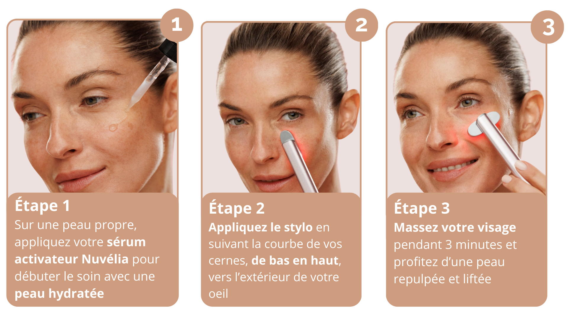 Le stylo NUVELIA s’utilise une seule fois par jour, en seulement 3 minutes, sur une peau propre et sèche.