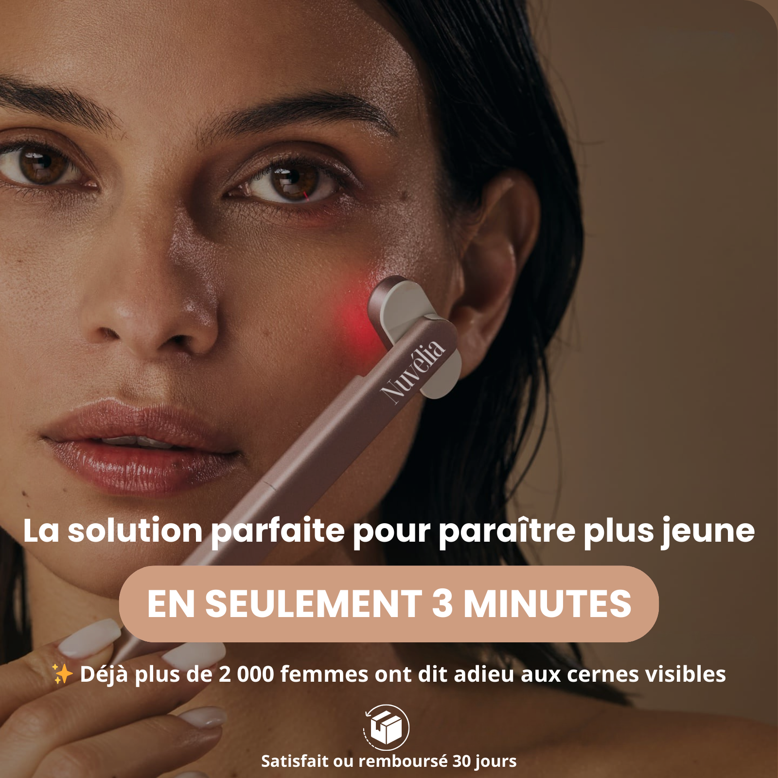 Le stylo NUVELIA est un appareil esthétique réutilisable à vie, conçu pour atténuer les cernes et les poches sous les yeux grâce à une combinaison de technologies naturelles et puissantes. Il intègre :