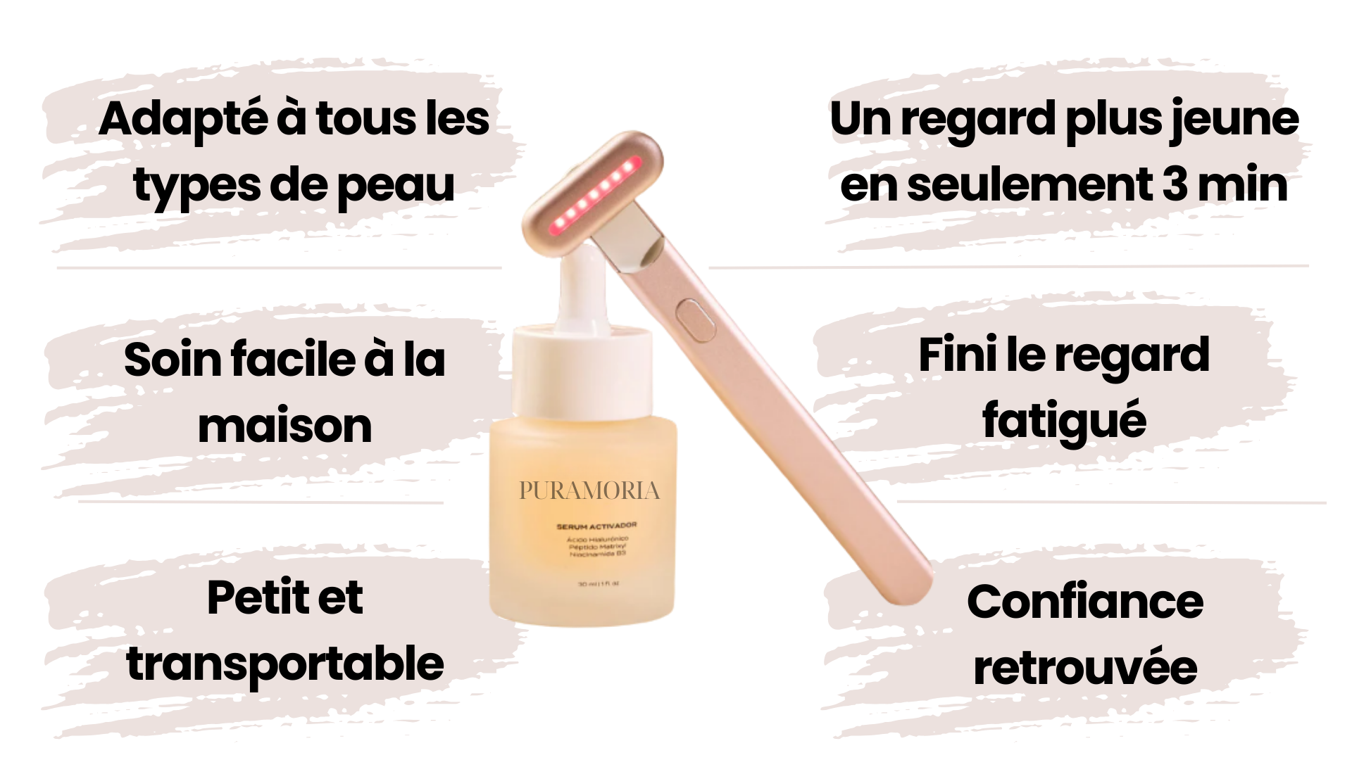 - Massage ciblé qui aide à améliorer la circulation et réduire visiblement les poches.